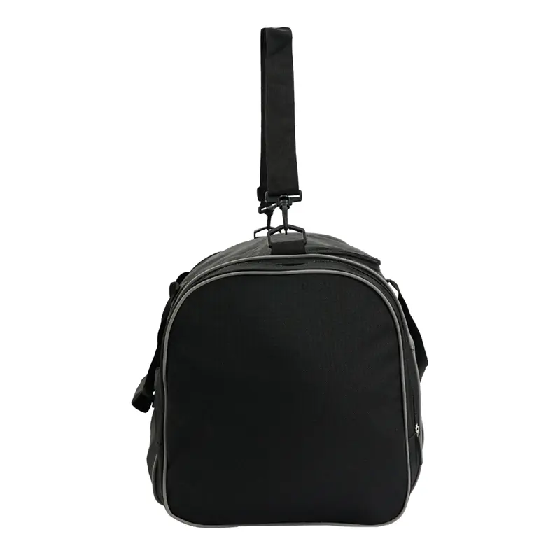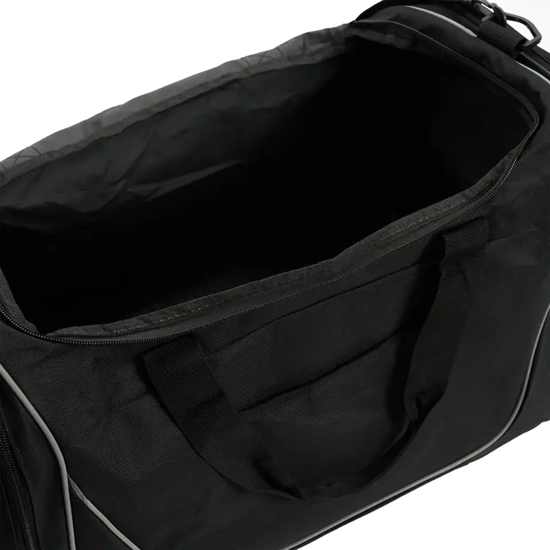 Bolso deportivo con múltiples compartimientos y manijas reforzadas. Está confeccionado en tela 600D. Cuenta con compartimiento principal con cierre, bolsillos laterales, manijas superiores con abrojo y correa regulable para el hombro. Es ideal para entrenamientos, actividades deportivas o viajes cortos.