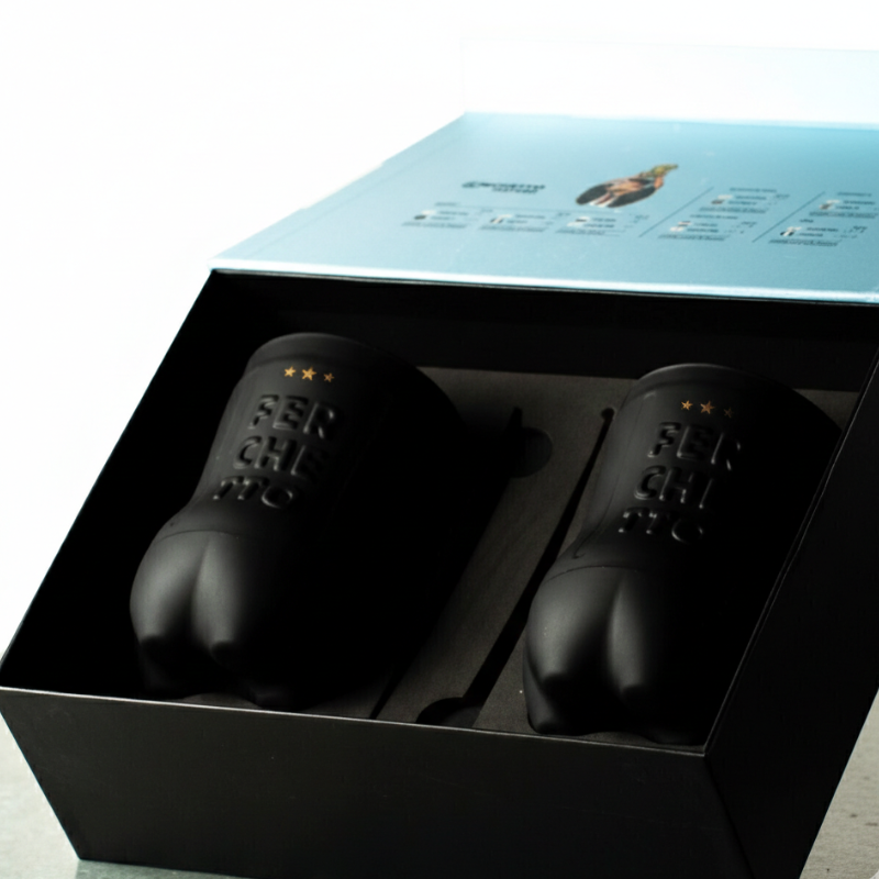 Una caja increíble con motivo de Argentina campeón del mundo que contiene dos vasos ferchetto negro edición limitada, dos sorbetes metálicos dorados edición limitada y dos posavasos de Argentina campeón del mundo. El regalo ideal para los fanáticos del fernet y del futbol.