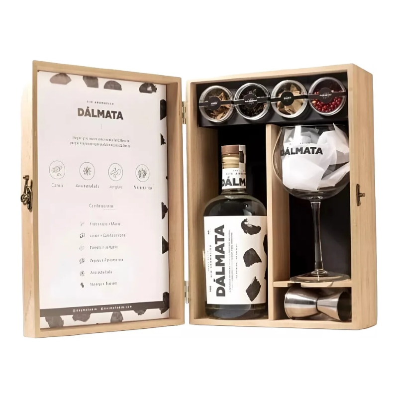 $1.00Incluye: Gin Dalmata x750cc Caja x6 botanicos: Canela - Anís estrellado - Jengibre - Pimienta rosa - Hibiscus - Coriandro -