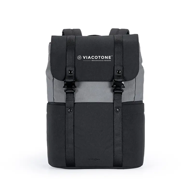 $1.00Mochila urbana hecha a base de poliéster reciclado 450D. Cuenta con un compartimento principal amplio, solapa con broches metálicos, correas… -
